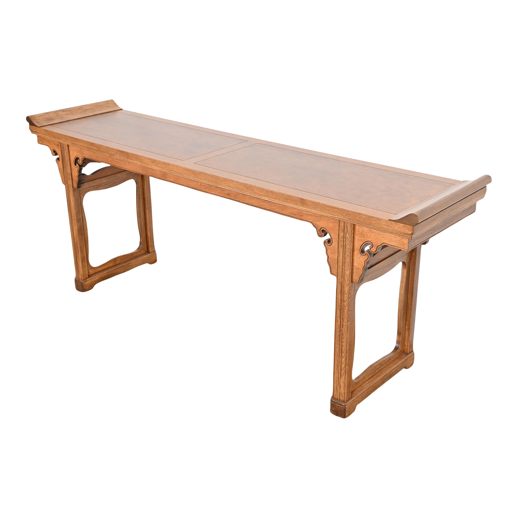 Baker Furniture Hollywood Regency Chinoiserie Burled Walnut Altar Table